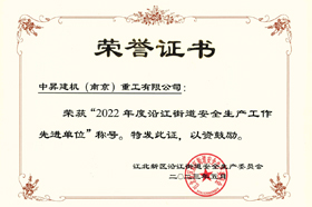 為表彰先進,進一步推動全街安全生產工作,經街道安委會研究決定,對中昇建機(南京)重工有限公司等5家安全生產工作先進單位。
